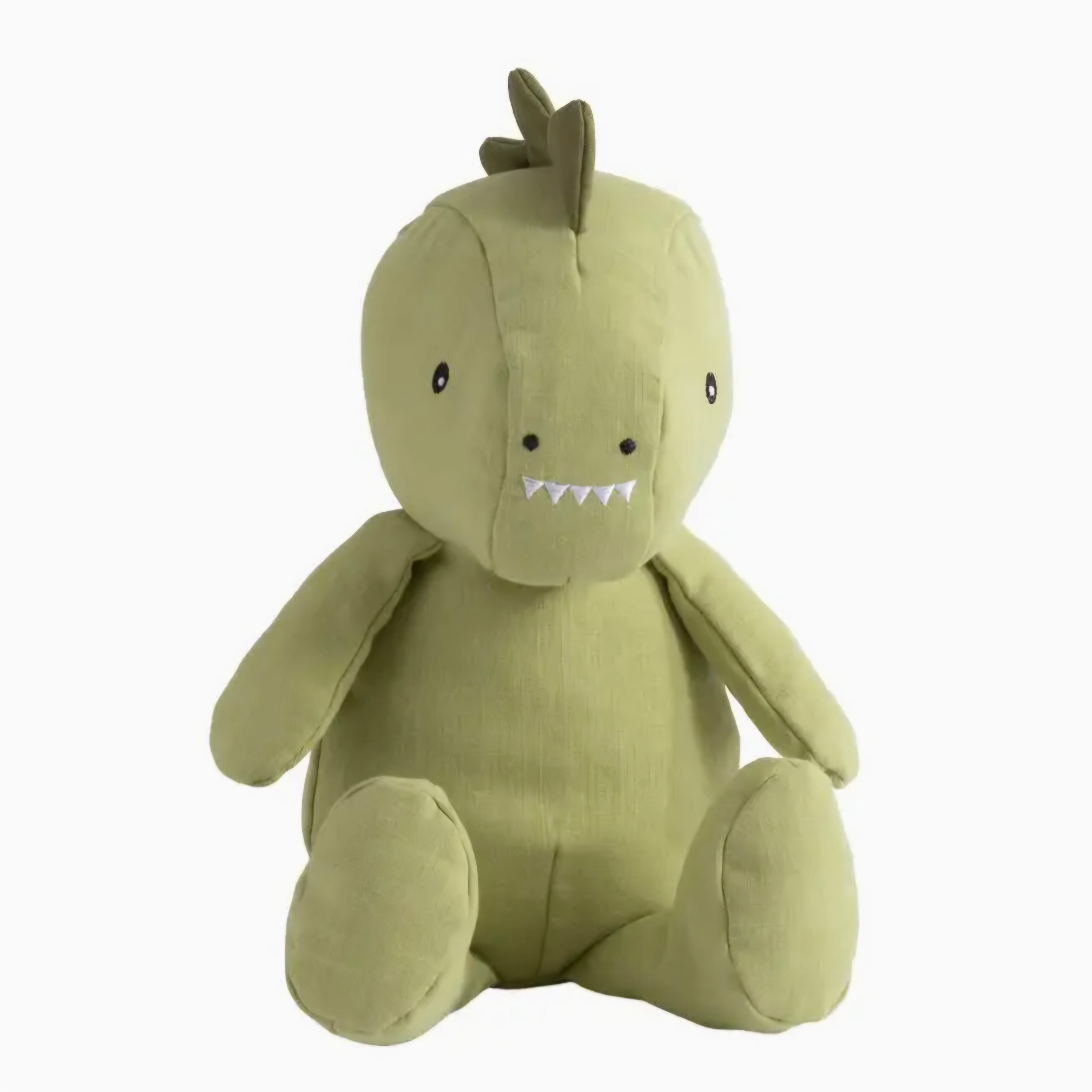 This delightful soft toy is made of linen and boasts charm. Dennis the dinosaur is very cuddly and designed with intricate detail with smooth lines. Encourages imaginative play and comfort cuddles. 25cm large.